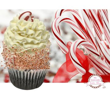 A rich chocolate cupcake that is topped with our signature white chocolate cream that is surrounded by a chocolate candy cane crumble.