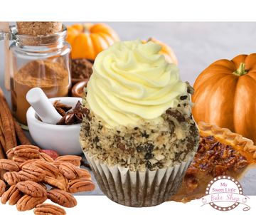 We merged two of our favorites this week. Our moist pumpkin cupcake with our pecan pie filling to create a fall masterpiece that may be better than pumpkin spice.