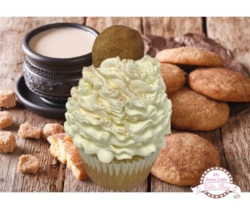 A cinnamon and sugar cupcake with a cookie butter cream filling topped with our signature white chocolate cream that is sprinkled with cinnamon and sugar and finished off with a fresh baked snickerdoodle cookie.