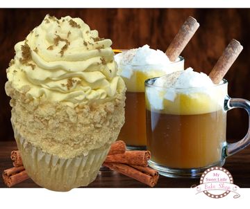 A light rum cupcake with a cookie butter cream filling topped with our signature white chocolate cream that is surrounded by crushed butter cookies and sprinkled with brown sugar and spices.