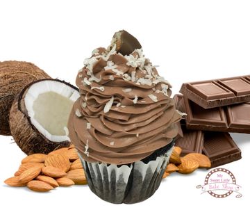 A moist chocolate cupcake filled with a coconut and almond cream filling that is topped with chocolate cream sprinkled with coconut and finished off with a chocolate coconut almond candy .... because sometimes you feel like a nut.