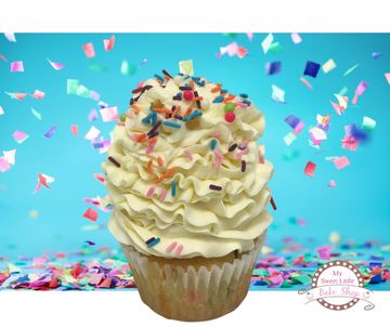 A moist funfetti cupcake topped with our signature white chocolate cream that is sprinkled with fun confetti sprinkles. It’s a party in your hand.